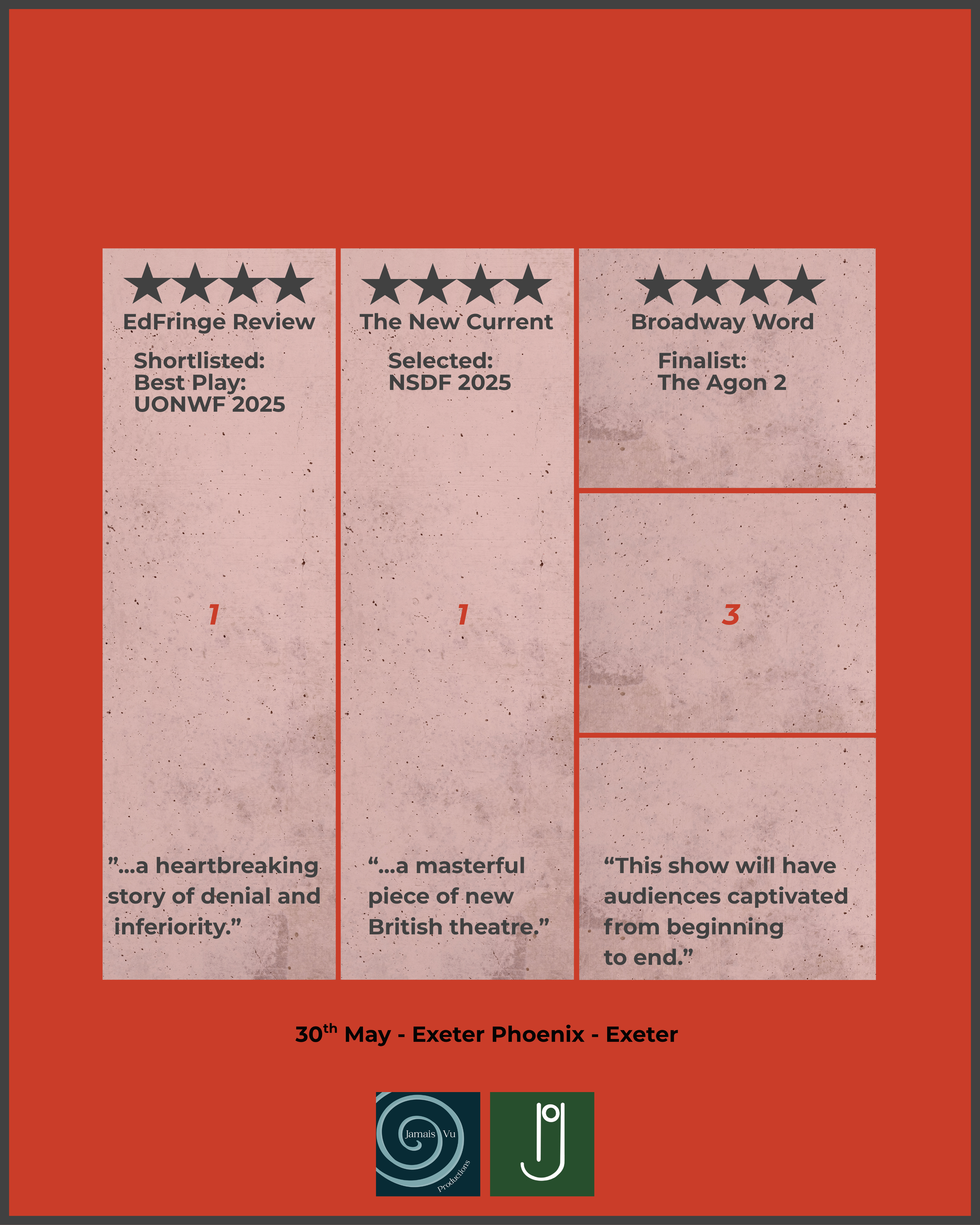 Jamais Vu: The phenomenon of experiencing a situation that one recognizes in some fashion, but that nonetheless seems novel and unfamiliar. Next up: Quiet LightAt the Barons Court THEATRE